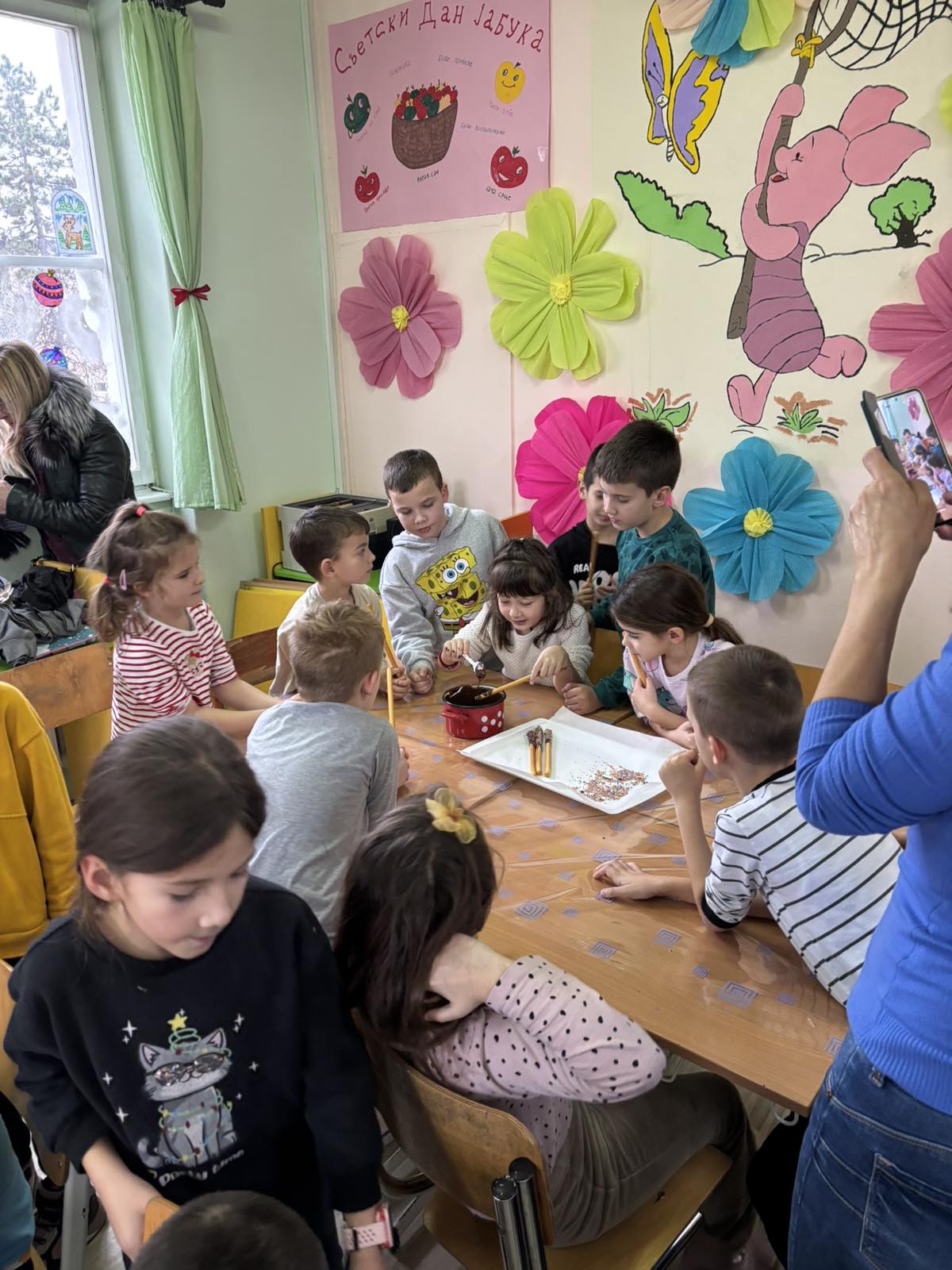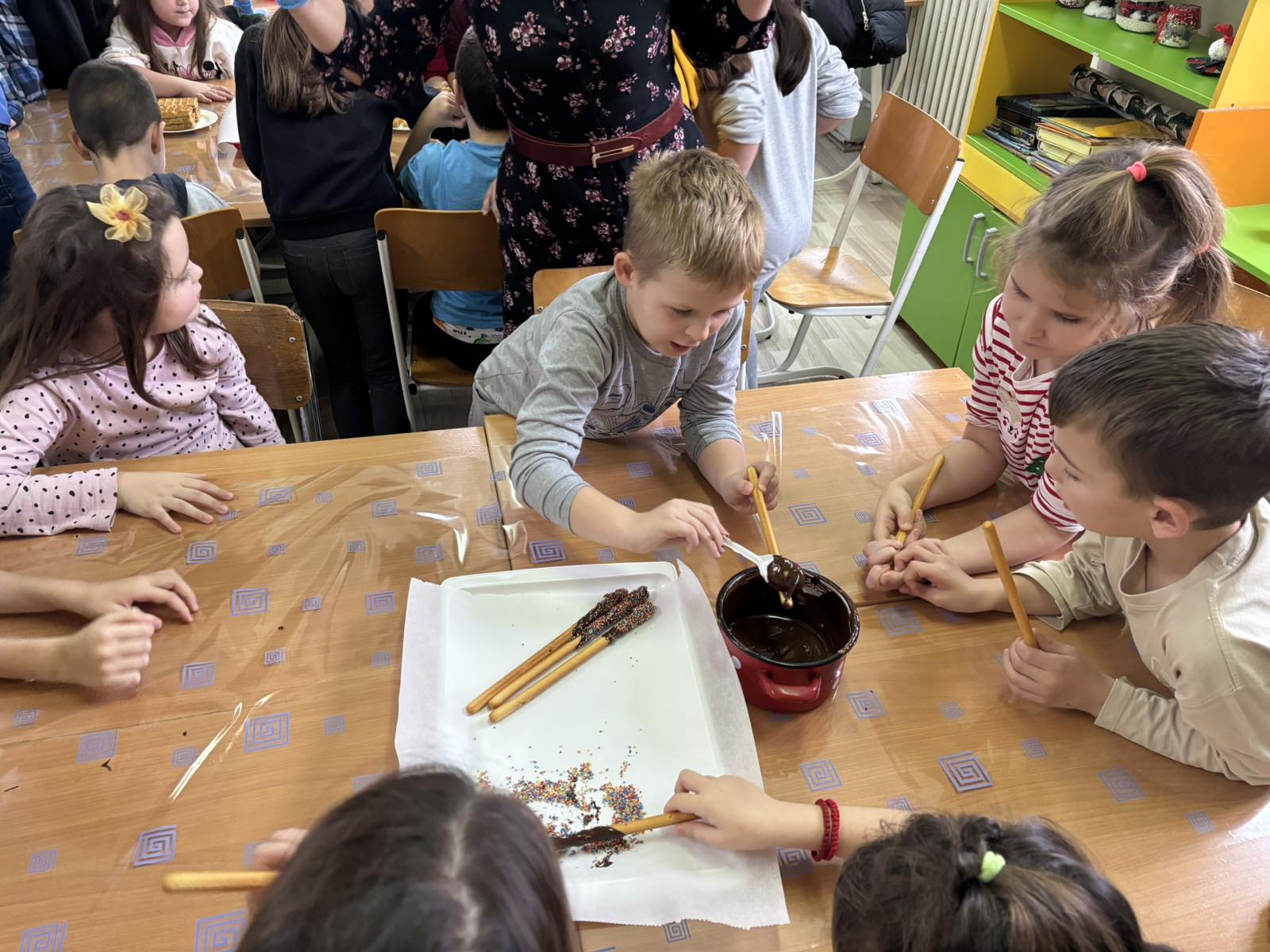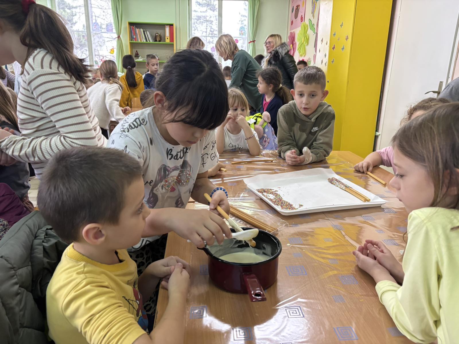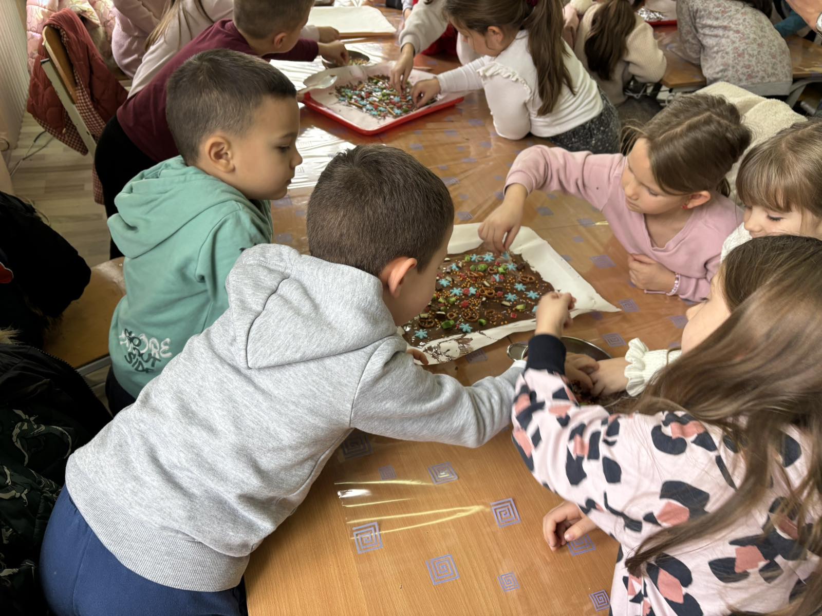 Имали су заједничку радионицу где су припремали слаткише за предстојећи Новогодишњи слатки пијац који организује продужени боравак.